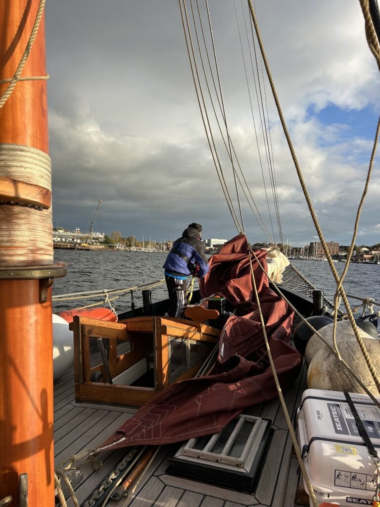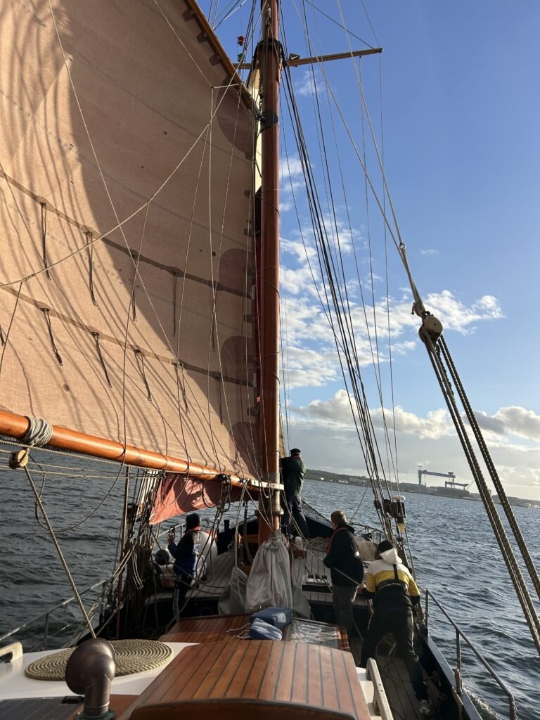 Sonne, Wolken und Wind mit 4 bis 6 Beaufort aus nordwestlichen Richtungen waren super Bedingungen für den Saisonausklang der Segel-AG, deren Teilnehmende heute mit der Seestern segelten. „Vielen Dank an Jürgen und den Verein Kieler Jugendkutterprojekt. Wir freuen uns schon auf die nächste Saison!“