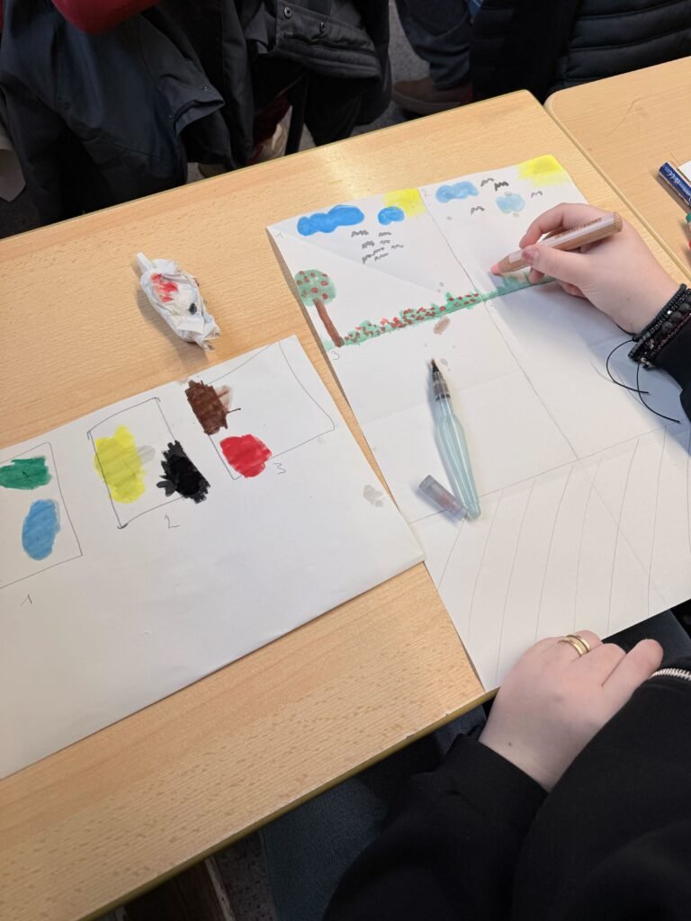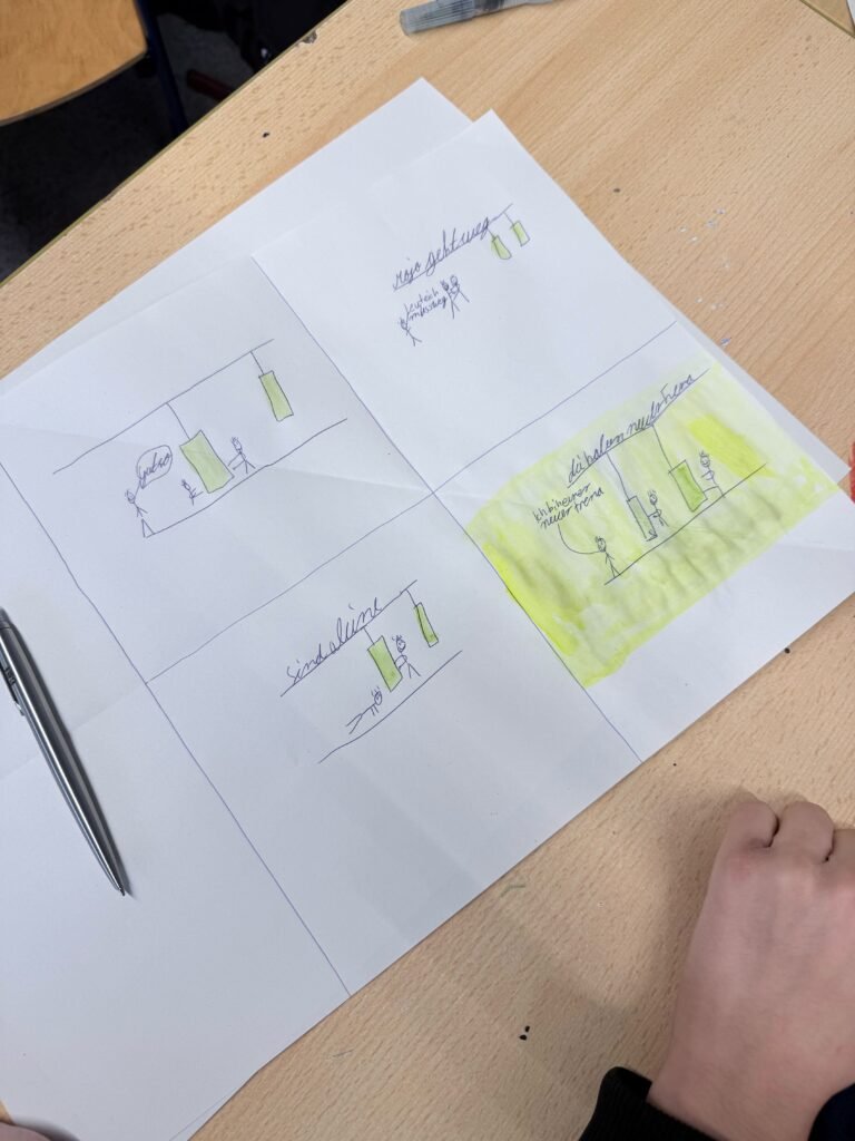Gemeinsam entdeckten wir vor Ort das „Problem“ unserer Geschichte, sammelten erste Ideen und entwickelten Charaktere für einen eigenen Comic. Mit dabei: Elena Büsing (Förderlehrkraft der 7c) und Stina Kurzhöfer als Kunstlehrkraft.