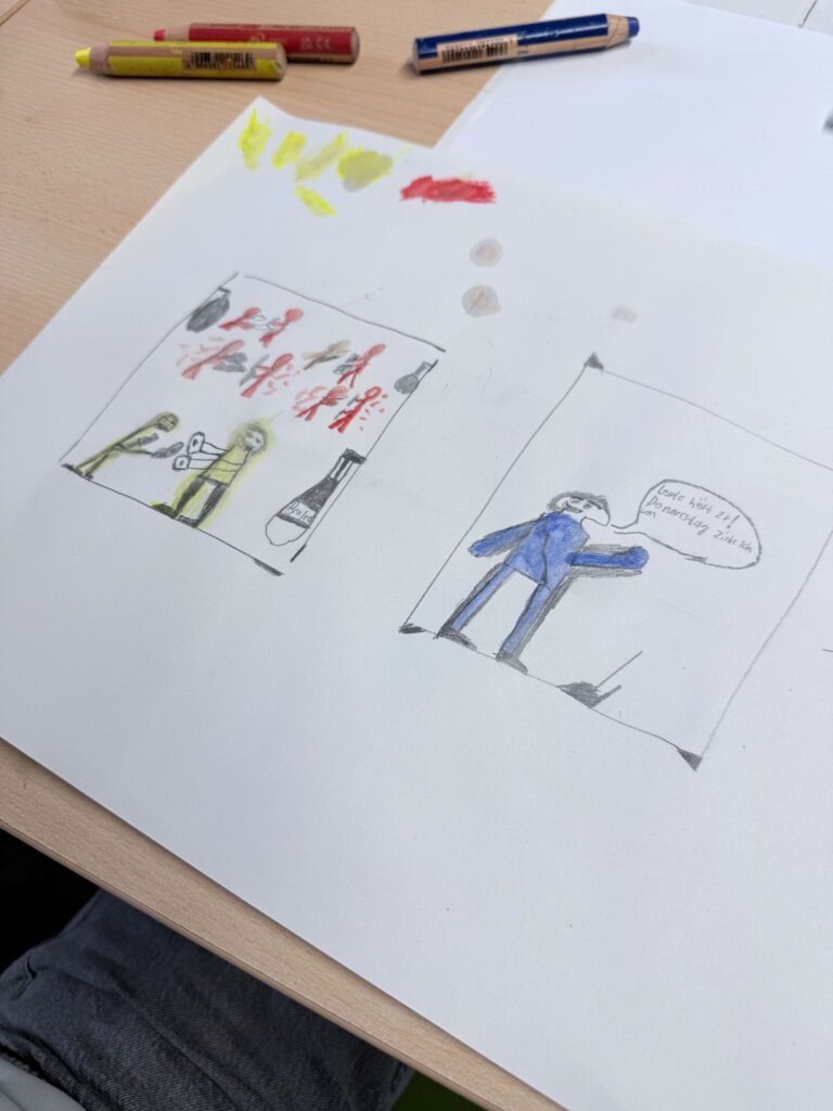 Stundenlang wurde konzentriert gezeichnet, ausprobiert, verworfen und neu gedacht – und es sind richtig tolle Geschichten und beeindruckende Comics entstanden!