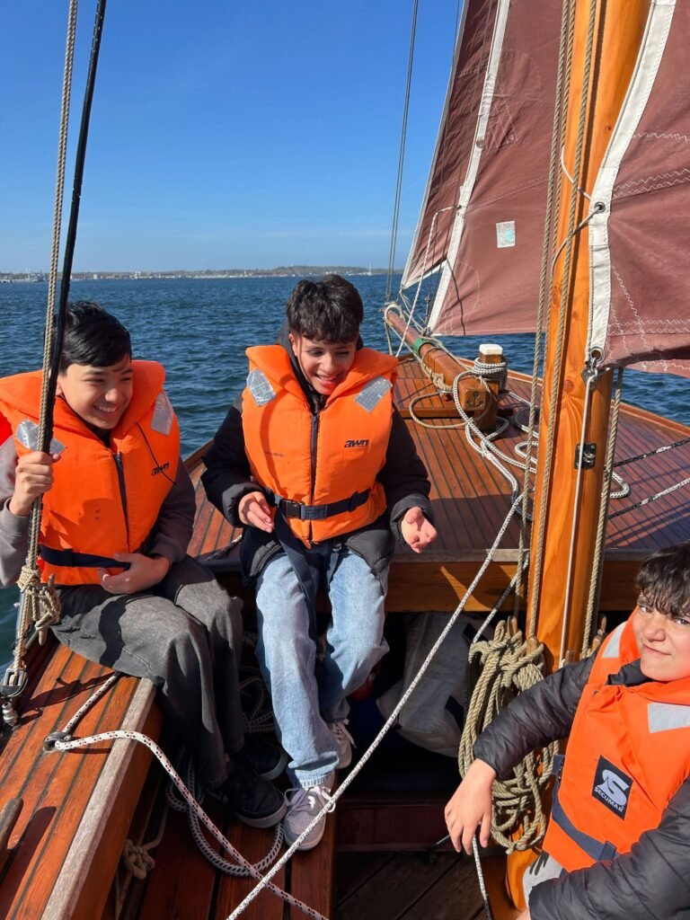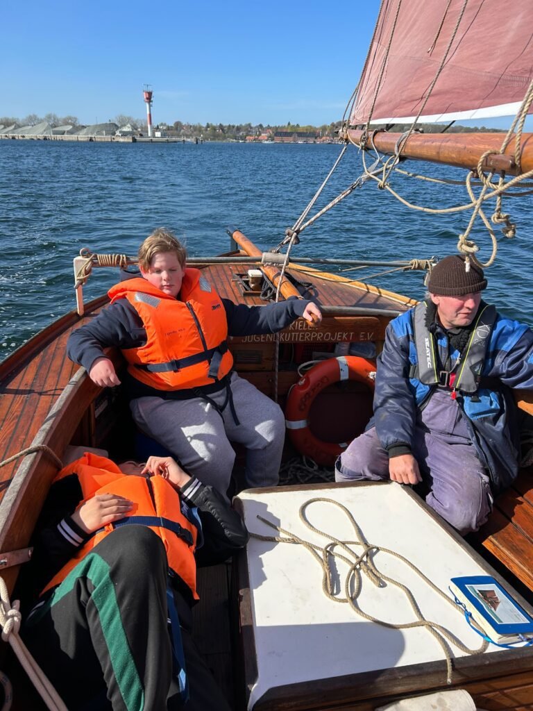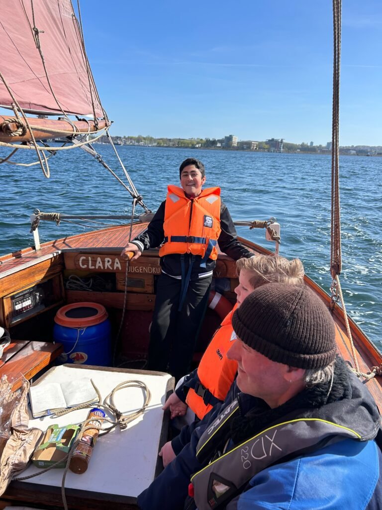 Bestes Segelwetter mit Sonne und böigem Wind aus westlichen Richtungen bescherte der Segel-AG einen wunderschönen Start in die neue Saison. Kutter Clara hatte ordentlich Schräglage und schaffte an der Spitze 6 Knoten. Was für ein Spaß!